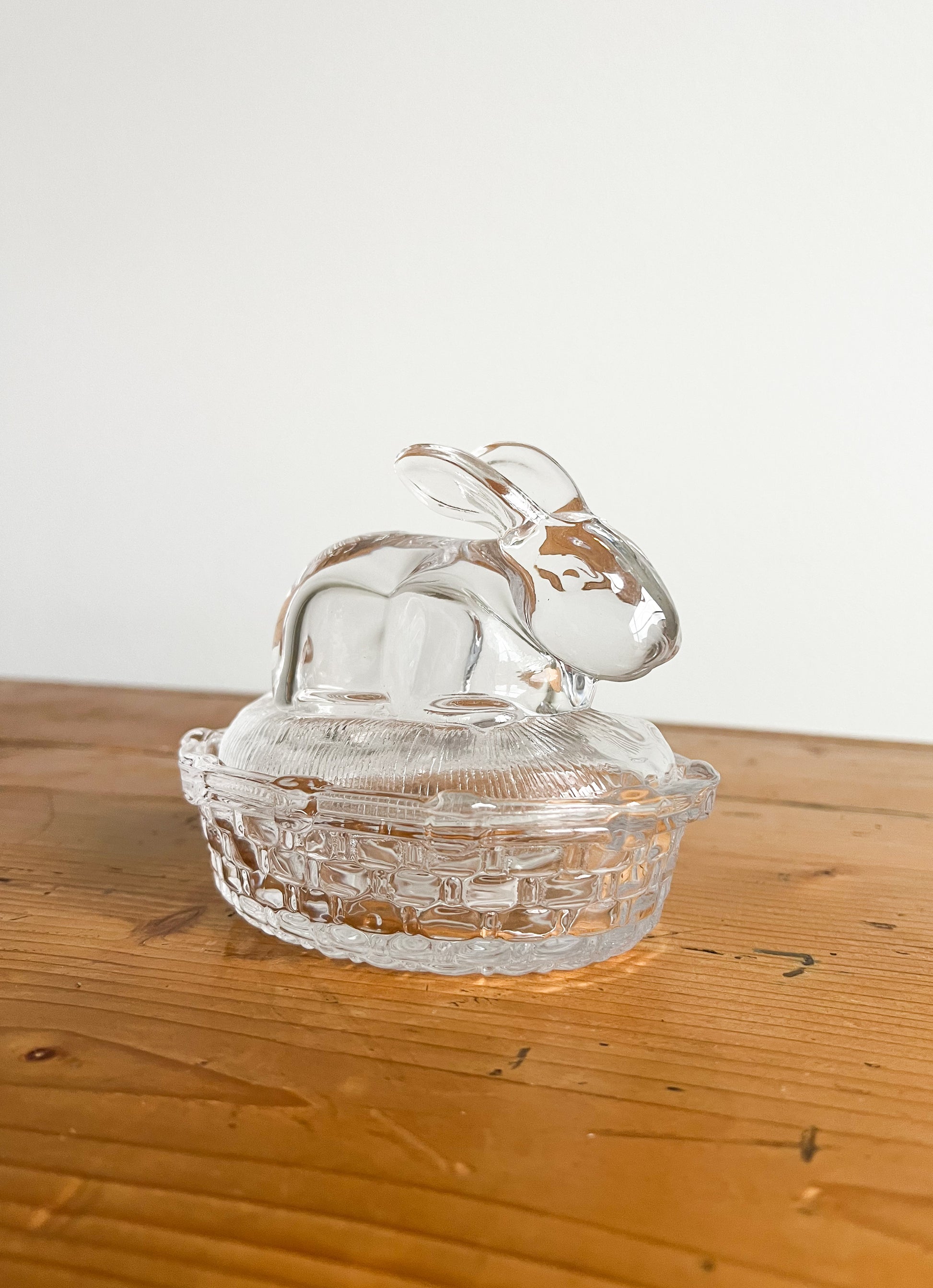 Vintage class bunny dish with lid. So sweet for spring! In pristine condition.