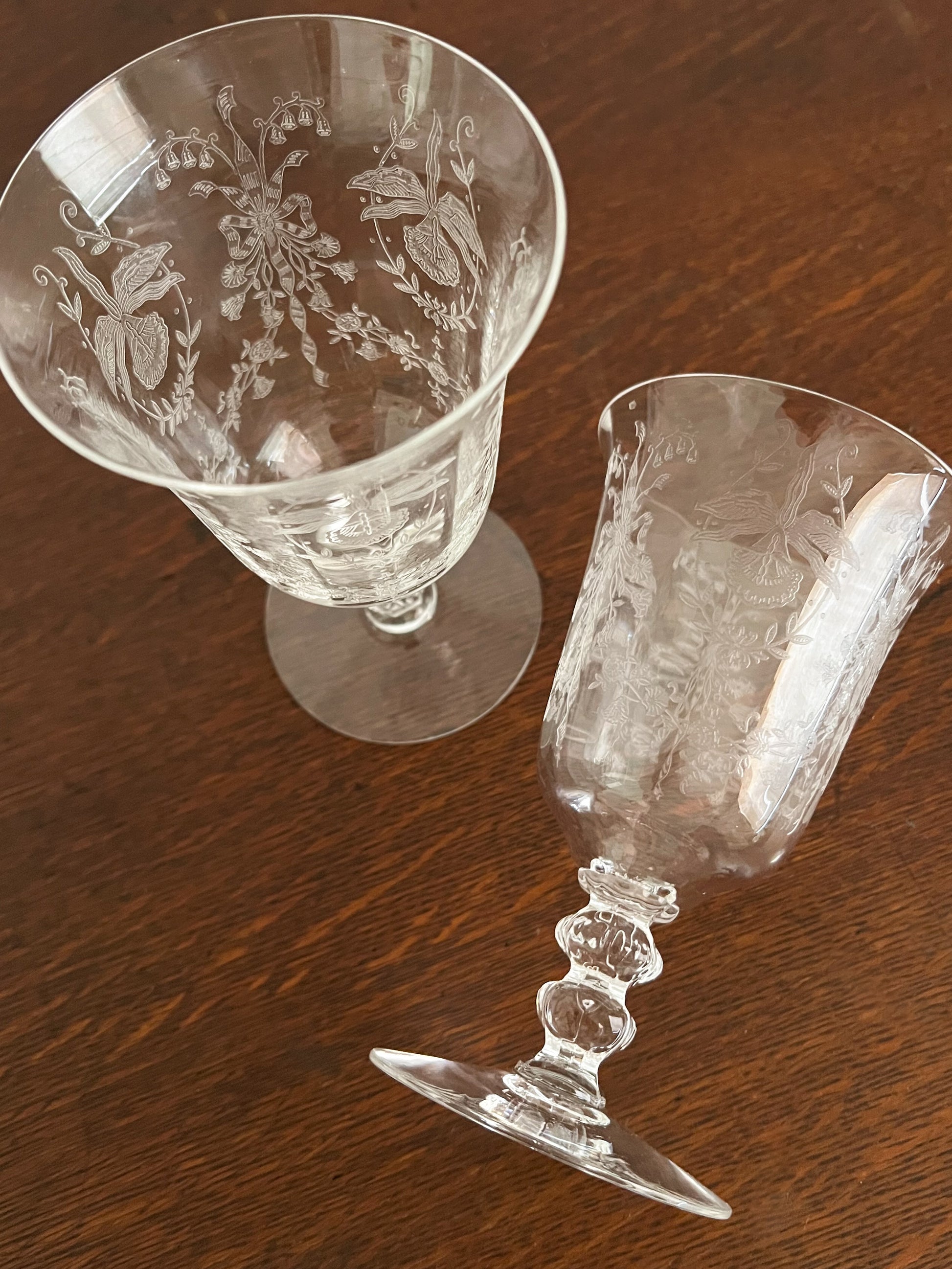 Heisey Depression Glass “Orchid” Etched Goblets (set of 2)