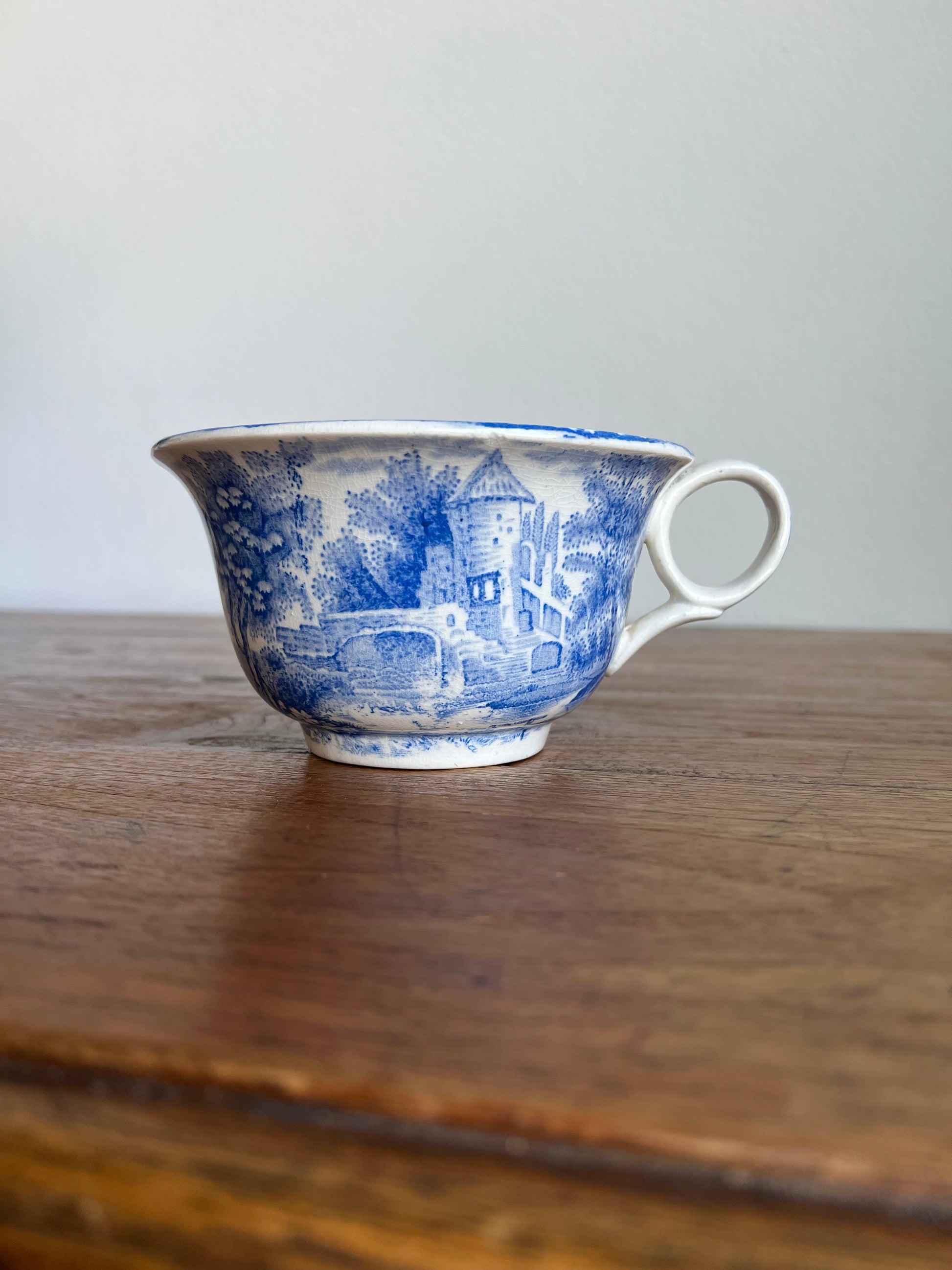 Large Antique “Auld Lang Syne” Blue and White Teacup