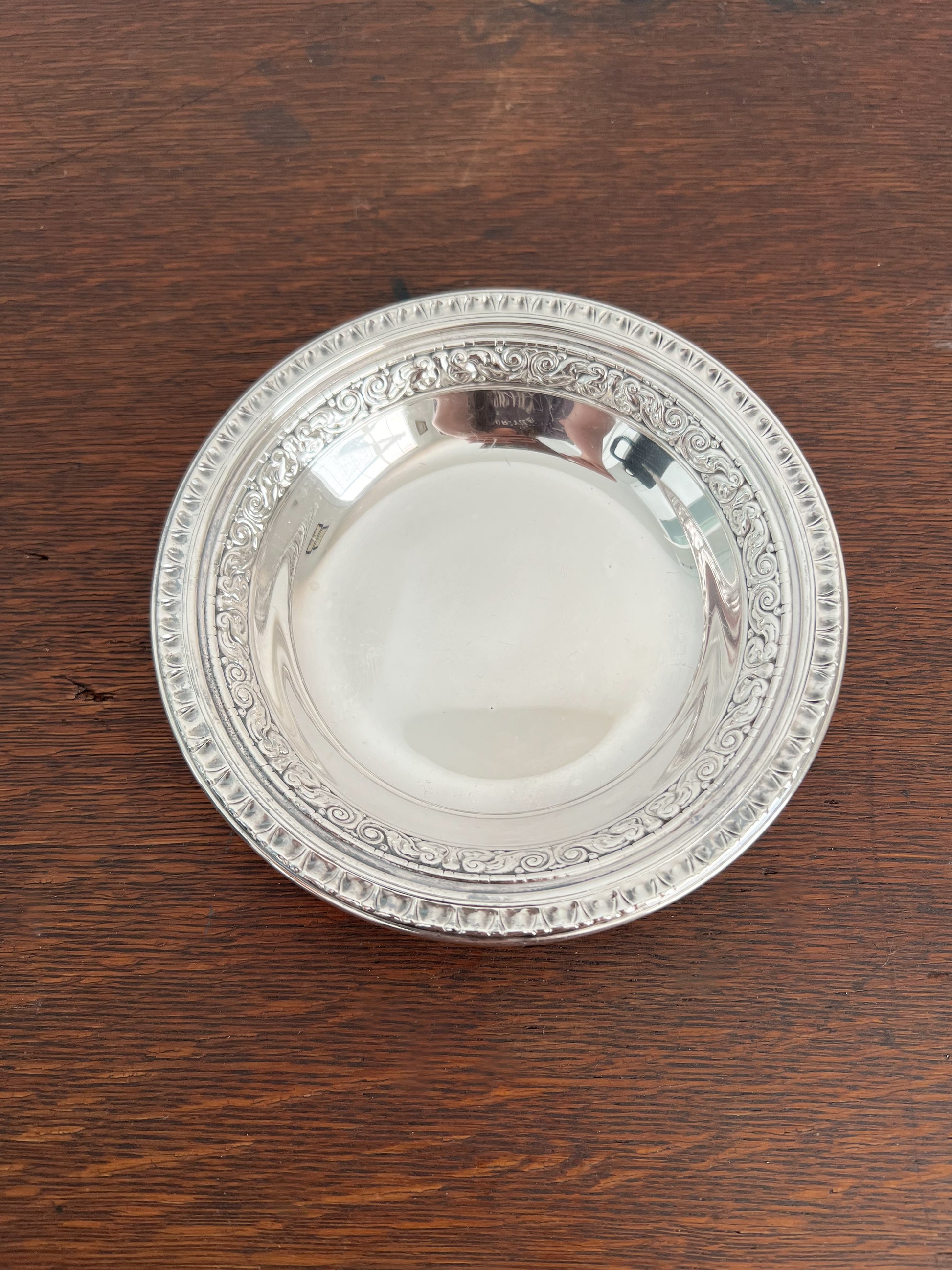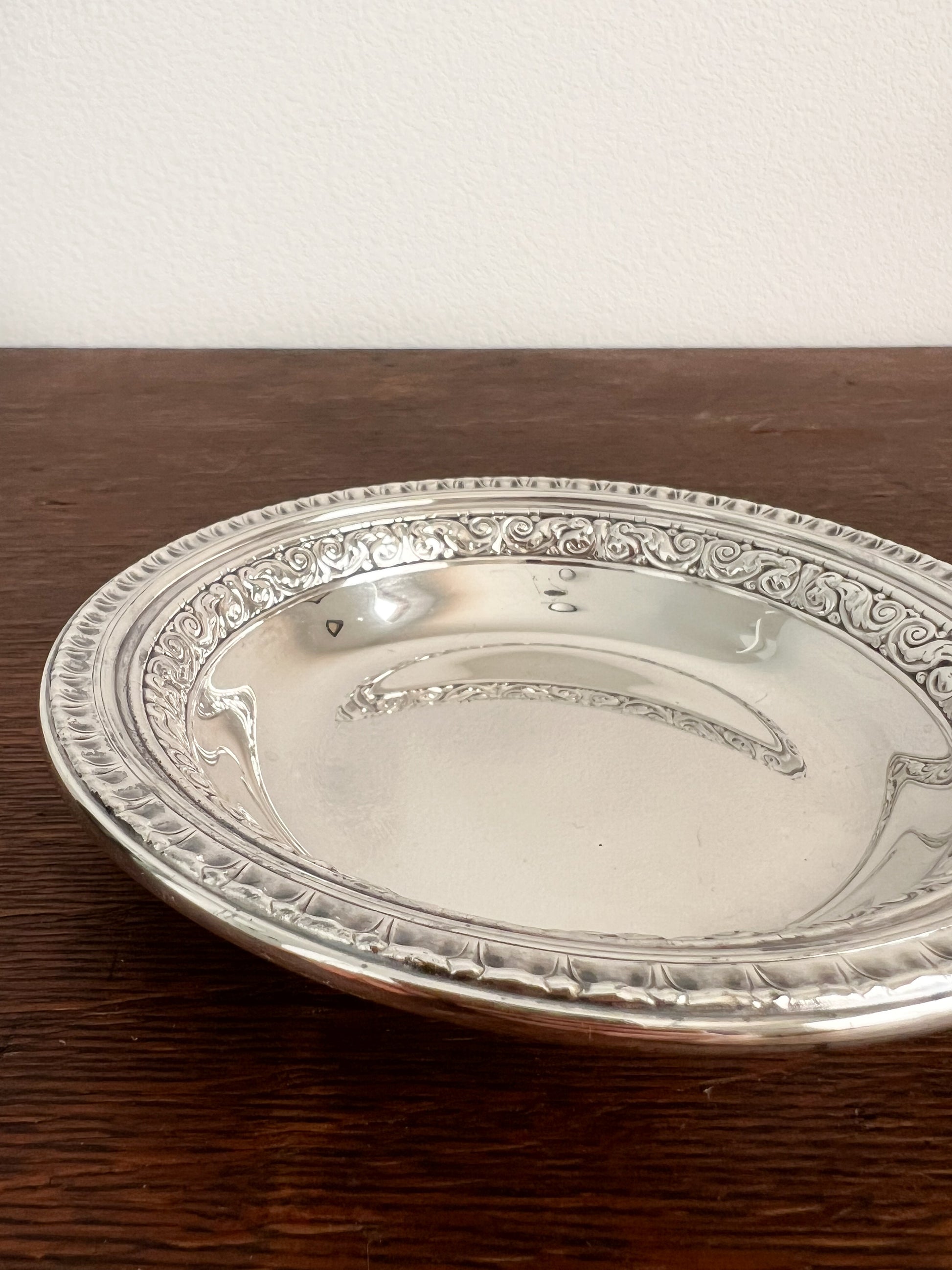 This vintage silver-plated dish by Reed & Barton is a versatile and elegant catchall, perfect for holding trinkets, keys, spare change, or even as a wine bottle coaster. Its classic round shape and polished finish make it a timeless addition to any tabletop, bar cart, or entryway.