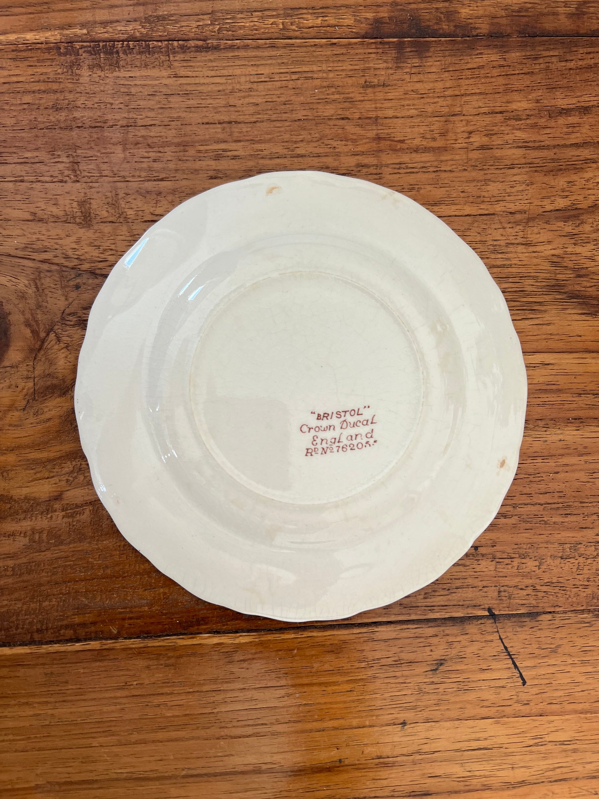 Beautiful brown and white “Bristol” Crown Ducal England plates with lovely crazing.