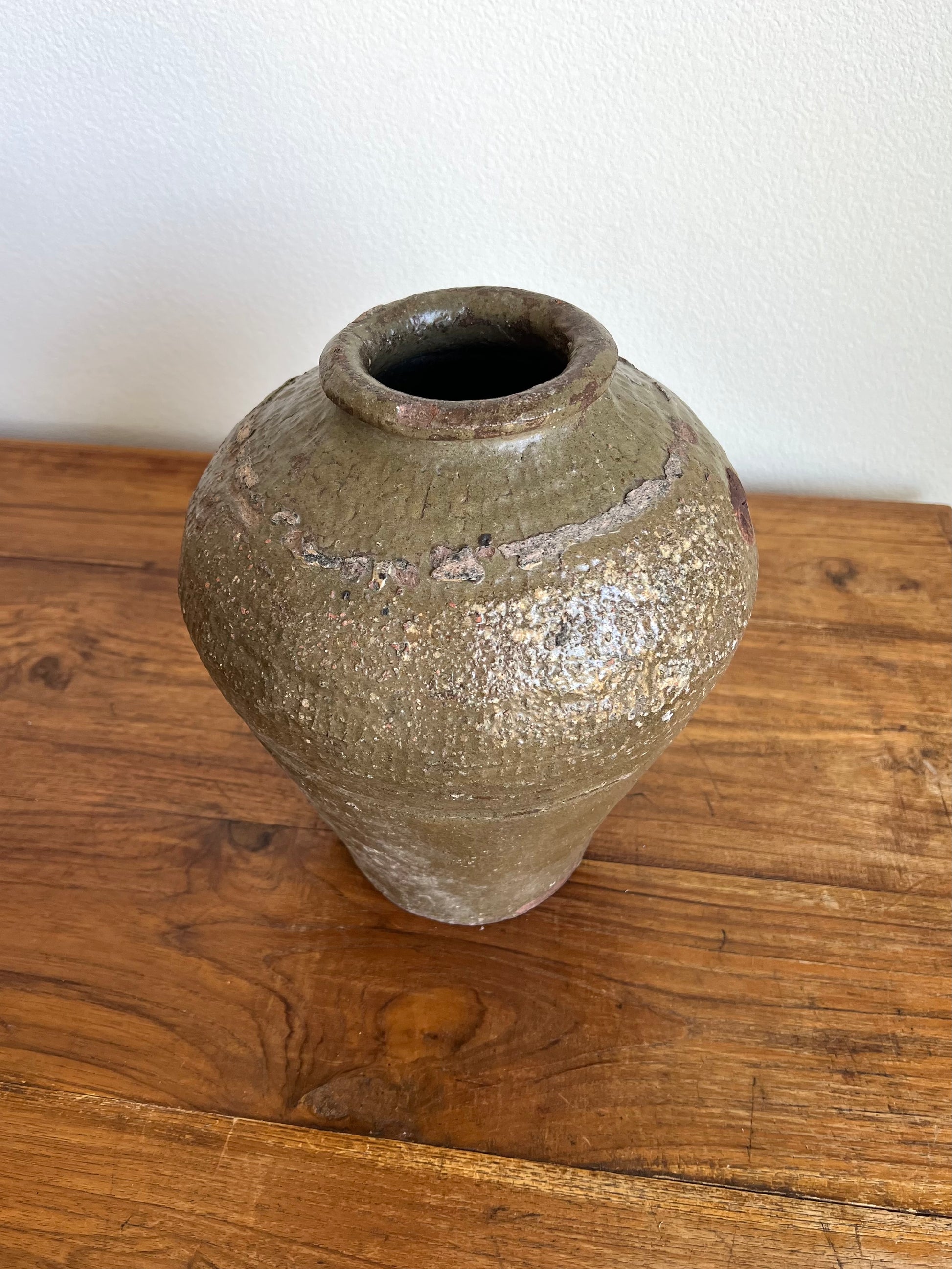 Handcrafted and age-worn, this tall, tapered jar is beautifully unique and one of a kind!